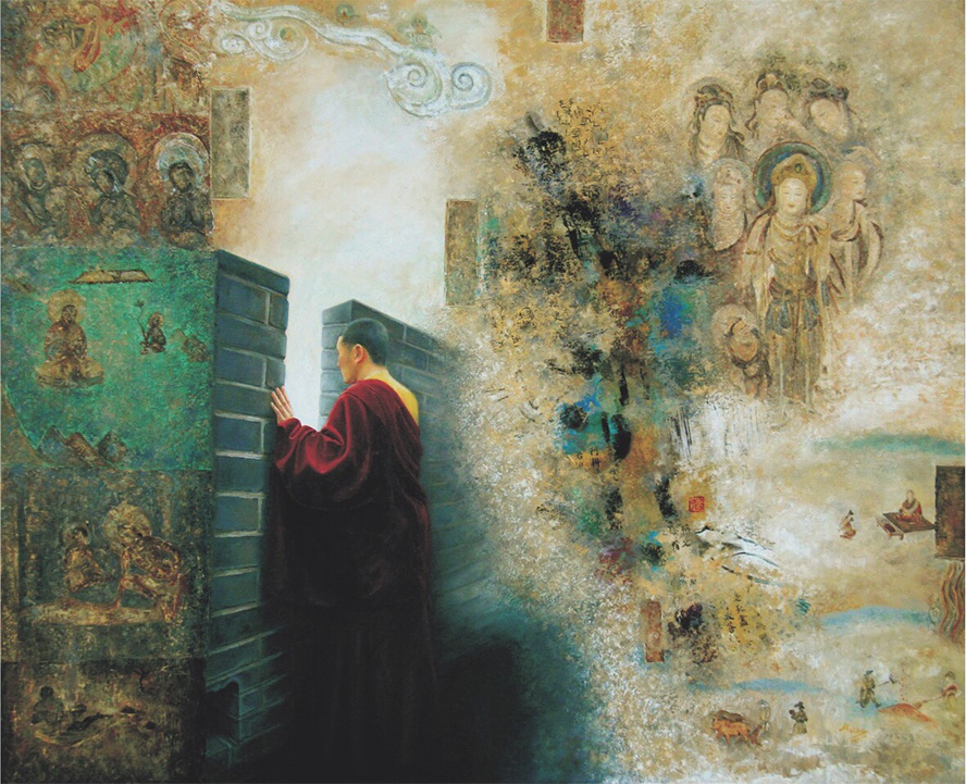 周娜的繪畫主要取材于絲綢之路以及藏傳佛教文化,而這其中的代表即為敦煌壁畫、古格壁畫和龜茲壁畫。由于地域和歷史原因,這一區(qū)域的繪畫深受古希臘和羅馬繪畫影響。尤其是隨著馬其頓國(guó)王亞歷山大東征,希臘人將其生活方式和文化傳入東方,經(jīng)此途徑,東西方文化獲得了直接交流和融合的機(jī)會(huì)。周娜的畫展就是從這里感悟提煉出嶄新的東方美學(xué)元素,用多種繪畫語言表達(dá)對(duì)美的認(rèn)知,從而形成自己獨(dú)特的藝術(shù)風(fēng)格。 (晶 晶)