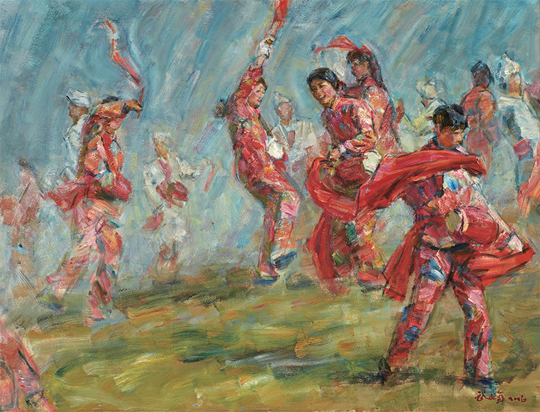 開幕式上,武永年將《信天游》等24幅作品捐獻(xiàn)給中國美術(shù)館永久收藏。展覽將持續(xù)至5月21日。圖為武永年作品《歡樂的女孩》。 (周 茉)