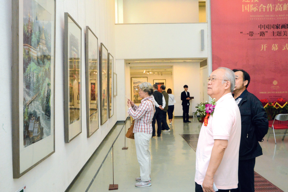 為迎接“一帶一路”國際合作高峰論壇,中國國家畫院主辦的“一帶一路”主題美術(shù)作品展5月9日至16日在中國國家畫院美術(shù)館舉行。本次展覽展出以“一帶一路”為主題的美術(shù)作品112件,其中國畫71件,油畫11件,版畫20件,公共藝術(shù)10件,既有“一帶一路”沿線地區(qū)的寫生、速寫作品,也有參與選題創(chuàng)作的初稿、創(chuàng)作作品等,涵蓋國畫、油畫、版畫、公共藝術(shù)多種類型,展示了國家畫院研究員參與“一帶一路”國際美術(shù)工程的階段性成果,是一次匯報展,也是對論壇的獻(xiàn)禮。