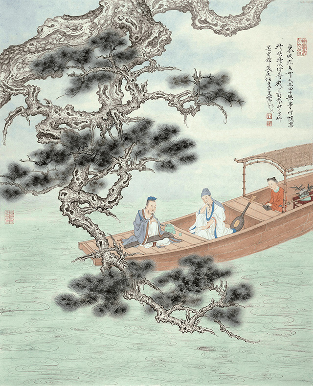 《清溪淺水行舟》的構(gòu)圖遵從傳統(tǒng)中國(guó)畫(huà)亦開(kāi)亦合的布局,畫(huà)中一樹(shù)偃松垂下,兩名高士攜一名童子乘扁舟而行。作品細(xì)節(jié)生動(dòng)逼真、一絲不茍,彰顯了藝術(shù)家的高超技法和虛實(shí)結(jié)合的繪畫(huà)理念,不僅展現(xiàn)了古人的精神狀態(tài),也表達(dá)了作者對(duì)當(dāng)今現(xiàn)代人生活狀態(tài)的哲思。主辦方表示,此次“一幅畫(huà)的展覽”是其推廣中國(guó)藝術(shù)家及其作品的新形式。畫(huà)展將通過(guò)關(guān)注佳作的創(chuàng)作者、繪畫(huà)技法、原材料、印章及這些元素背后的故事,從不同視角展現(xiàn)藝術(shù)家的風(fēng)采。