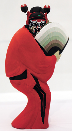 在現(xiàn)場展出的一百多件作品當中,既有紅樓、聊齋等古典文學題材,也有民族系列和生肖系列,還有反映“一帶一路”等時代主題之作,觀者獲得的是民間藝術與現(xiàn)代審美結合的全新視覺體驗。在他的作品當中,既能夠體會到傳統(tǒng)“泥人張”技藝手法的神韻,又可以感受到色彩學、構成學、裝飾藝術乃至許多國外視覺藝術的影響。他在“泥人張”傳統(tǒng)的具象藝術和現(xiàn)代抽象藝術之間,在古老技藝和當代生活之間,尋找到一座貫通的橋梁,通過現(xiàn)代設計手段,實現(xiàn)了傳統(tǒng)與現(xiàn)代的和諧交織。