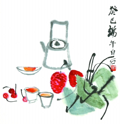 端午節(jié)的發(fā)端與楚文化緊密相連。楚文化有著一種神秘的氣氛,巫山云夢(mèng),幽谷茂林,讓人們多一分神思仙念。民俗端午節(jié)是為了紀(jì)念偉大的愛國詩人屈原,藝術(shù)史上也留下很多以屈原為題材的經(jīng)典畫作。在文人畫家的視野中,屈原是忠君愛國的典范。在明代畫家朱約佶的筆下,巖下仰天而坐的屈原傲骨臨風(fēng),擺脫了儒家對(duì)屈原的“夫子”化的詮釋;近代畫家傅抱石筆下,披頭散發(fā)的屈原望向滔滔江水,悲憤之情油然而生,江岸的雜草荒蕪、遠(yuǎn)景的水天蒼茫,不免讓人誦出《天問》的蒼涼歌調(diào);當(dāng)代畫家王西京筆下的屈原,有了更明確的風(fēng)骨格調(diào),大膽灑脫的勾線與明快清晰的留白,彰顯了中國人物畫的精湛技藝以及筆墨黑白的獨(dú)特魅力。這些畫充分體現(xiàn)了士人風(fēng)骨與悲憤情懷,鐵骨錚錚的端午粽色滲透著對(duì)屈原精神大美至頌的祭拜。