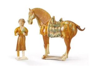 唐三彩馬及牽馬俑