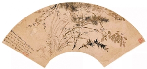 清潘思牧《繁花》水墨紙本扇面