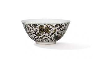 清雍正墨彩纏枝菊紋茶碗。 (佳士得供圖)