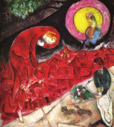 馬克·夏加爾的《紅色的屋頂》(局部)