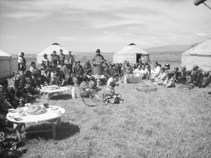 在政府部門的積極帶動下,新疆民間保護非遺的熱情高漲。柯爾克孜族英雄史詩《瑪納斯》在申報聯(lián)合國教科文組織“人類非遺代表作名錄”時,工作人員到阿合奇草原拍攝申報片。每到一處,他們都得到了當?shù)卣兔癖姷拇罅χС帧.數(shù)厝搜莩冬敿{斯》的欲望很強烈,以致于錄制工作從清晨一直持續(xù)到夜晚。于是,便出現(xiàn)了這樣一幕:在帕米爾高原的夜晚,在一個燈火通明的帳篷里,當?shù)氐娜顺隽俗顒勇牭摹冬敿{斯》之聲。