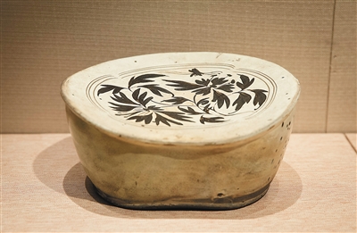 磁州窯白釉褐彩腰形枕。