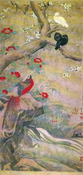 夏伊喬畫(huà)作《錦雞茶花》(局部)。