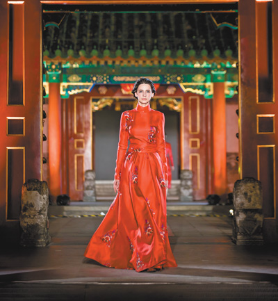 入夜,北京恭王府紅墻大院內,青石板上搭起T臺。繾綣撩人的布依族浪哨中,云鬢香衣款款而來,“依文·永不遺失的繡夢”時裝秀上的布依族刺繡驚艷全場。