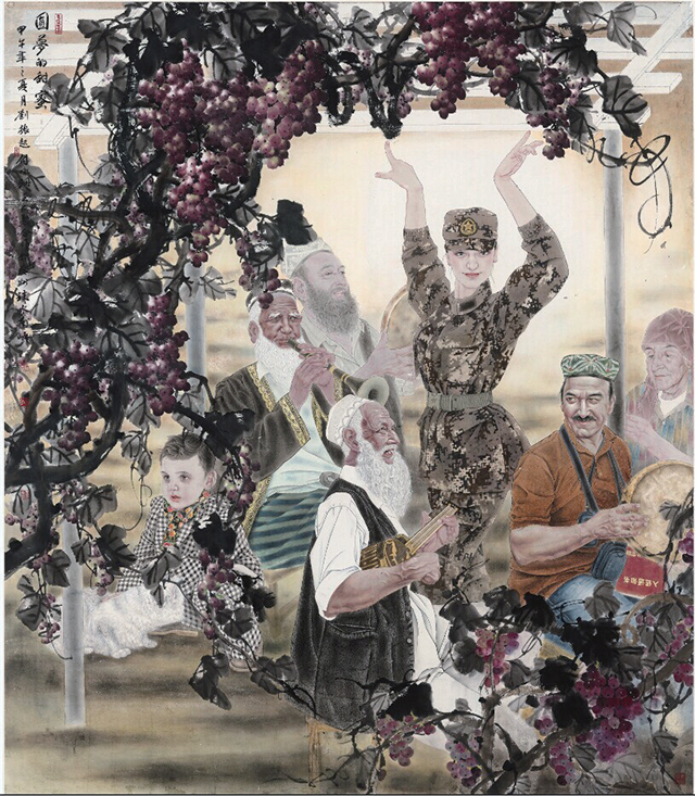 如果說,工筆人物是付詠珊的主要特色,那么,寫意人物和花鳥同樣也是她的專長。早在2000年,她的作品《竹林七賢》就曾獲得山東省首屆“水滸杯”書畫大賽金獎(jiǎng)。此后,《秋韻》《秋實(shí)》《傲霜枝》《融合》《科學(xué)開出幸?;ā贰锻跽丫贰哆@里的黎明靜悄悄》《小旗手》《南粵新綠》《圓夢的甜蜜》等一系列作品多次入選重要美術(shù)展覽、獲得各類獎(jiǎng)項(xiàng)。這些榮譽(yù)的取得,很大程度上與她的努力和付出是成正比的。誰曾想到,付詠珊白天有繁忙的工作事務(wù)要處理,而每當(dāng)夜深人靜、萬物入睡時(shí),她還在燈下忘我作畫;誰曾看到,每當(dāng)萬家團(tuán)圓的節(jié)假日,付詠珊卻默默背著畫具外出采風(fēng)、寫生……無論在工作還是在藝術(shù)上,她都是名副其實(shí)的“排頭兵”。