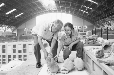 許衛(wèi)紅(右)和袁仲一在秦始皇兵馬俑一號坑。 資料圖片
