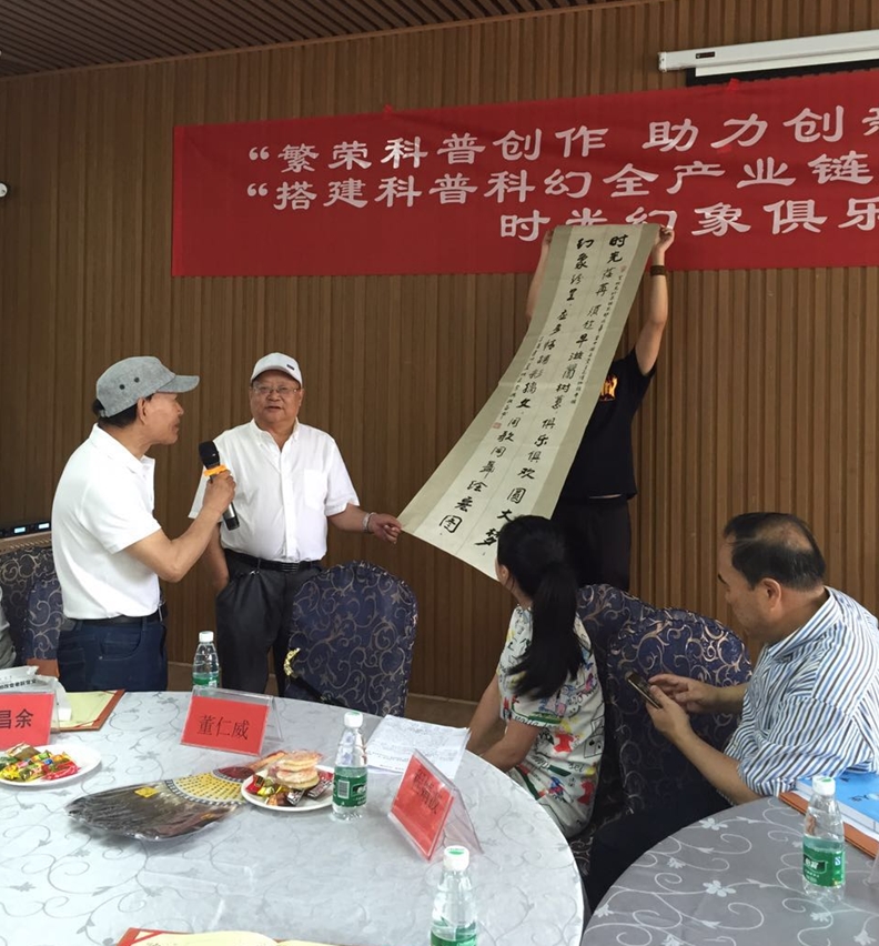時(shí)光幻象公司藝術(shù)總監(jiān)、著名科幻作家程婧波主持了會(huì)議,時(shí)光幻象公司董事長(zhǎng)、著名科普作家董仁威做了主旨發(fā)言,參加大會(huì)的有著名老科普科幻作家吳顯奎、劉興詩、王曉達(dá)、張文敬、張昌余、黃劍華、達(dá)鵬福、孫仁尤;著名中青年科普科幻作家程婧波、彭柳蓉、歐陽軍、何大江、董晶、陸楊、拉茲、謝云寧、李慶雯、賈英杰;著名科普科幻活動(dòng)家、編輯出版家、實(shí)業(yè)家:甘偉康、方守默、李祚炳、石以、童恩文、雷華、何楊、段益生、付勝、李茂榮、任路遙等30余人。
