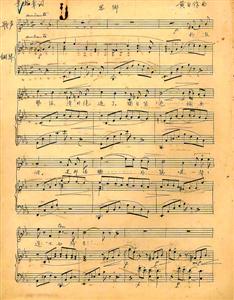 ◆黃自《思鄉(xiāng)》手稿(部分),摘自《黃自先生誕辰110周年珍貴文獻檔案展展覽手冊》