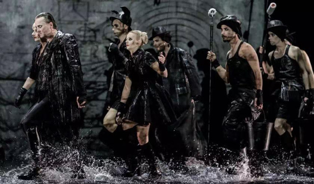 在斯洛文尼亞國家話劇院的《浮士德》中,演出開始,群魔登臺,毫無愧色地宣稱:“我們與傳說中的魔鬼大不相同”;“我們有文化、有智慧,憤世嫉俗”;“我們是物質(zhì)主義和虛無主義時代的代表”;“‘天堂序曲’中,從一開始我們就在上帝的近旁”、“我們當然也是神界的組成部分”……在劇中,隱身潛行、深藏不露的上帝,變?yōu)樯砘細埣病c在輪椅上的“劇場經(jīng)理”。魔鬼繁衍或分身為一個大家族:梅菲斯特、梅菲斯特夫人、兒子、女兒和一眾嘍啰。小市民瑪格麗特,則從一個純情少女變成嬌媚淫冶的蕩婦,她與浮士德回腸蕩氣的愛戀與自我折磨式的悔恨,轉(zhuǎn)變?yōu)橐粓龀C揉造作、博取廉價掌聲的“演出”。全部演出、檢場與布景遷換,均由魔鬼家族中的眾嘍啰迅速完成。他們既是檢場人,又是劇中角色,身份模棱兩可。他們當眾為瑪格麗特披上新娘的嫁衣,為浮士德鋪排各種神游的場景。他們是“宇宙移民”(魔鬼的臺詞),又置身度外。人間悲歡,何妨伴唱一段小曲;生命損毀,猶如揉碎一個黑色氣球。他們比作為劇場經(jīng)理的上帝,更具舞臺功能與象征意義。正如瑪格麗特本是魔鬼的女兒,瓦倫庭本是魔鬼的兒子一樣,人間皆魔。你或許認為編導者未免消極與偏頗。但正是借此一筆,導演托馬斯· 潘鐸不動聲色地楔入人性的黯晦處,并為魔鬼與上帝同源、神性與魔性一體,寫下一條俗話不俗的注腳。