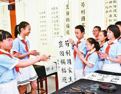 福州市瑯岐實驗小學,同學們在展示自己書寫的名人家風家訓。新華社發(fā)