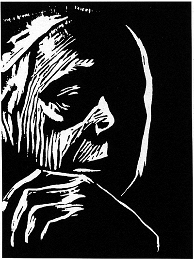 這也是中國人最早認識的珂勒惠支作品,其典型風格有著集中表現(xiàn)。她善于通過肢體語言,尤其是通過頭和手,簡潔有力地刻畫出人物的內(nèi)心掙扎?!稜奚氛侨绱?,畫中赤裸的母親緊閉雙眼,在極度悲哀中,伸出雙手交出她的孩子。用魯迅的話說“這藝術(shù)是陰郁的,雖然都在動彈,集中于強韌的力量,這藝術(shù)是統(tǒng)一而單純的——非常之逼人。”