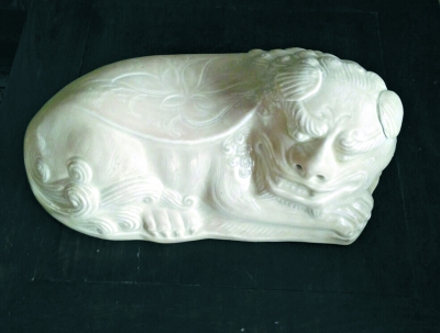 當(dāng)年乾隆皇帝在得到一件宋代定窯白瓷孩兒枕時(shí)非常欣喜,特地作了一首詩:“瓷枕通靈氣,全勝玳與珊。眠云渾不覺,夢(mèng)蝶更應(yīng)安。”定窯一直被視為宋代五大名窯之一,創(chuàng)燒于河北定州曲陽,河南當(dāng)陽峪窯、禹州扒村窯和魯山段店窯都生產(chǎn)有定瓷一類的器物,通常被稱為定窯系。特別要引起關(guān)注的是,近年發(fā)現(xiàn)的段店定瓷,其種類和質(zhì)量都比曲陽定瓷更勝一籌,色彩有白、粉、綠、黃、醬、黑等多種,器型有瓶、盤、枕、壺、尊等,燒制于北宋早中期,燒制溫度比曲陽定窯略高。白瓷顏色也較為潔白,?;潭容^高,瓷胎也較精細(xì),并出現(xiàn)不少宮廷刻款。當(dāng)?shù)氐牟丶艺J(rèn)為段店定瓷有可能是皇家用瓷,理由是魯山屬于汝州轄下,而汝窯為繼定窯之后的北宋官窯。汝州離京師不遠(yuǎn),既然有能力生產(chǎn)這么精美的白瓷,完全沒有必要舍近求遠(yuǎn),到河北的曲陽去生產(chǎn)官窯白瓷。目前見到的段店白定瓷工藝制作水平達(dá)到很高的程度,筆者收藏的瓷枕中就有工藝復(fù)雜、制作精細(xì)的,如一件白瓷獅枕,刻花極其精細(xì),獅子的毛發(fā)纖毫畢現(xiàn),獅子的塑造結(jié)構(gòu)復(fù)雜,立體感強(qiáng),十分罕見。當(dāng)然還有印花、劃花、剔花各種造型和工藝的瓷枕,有的填補(bǔ)了國(guó)內(nèi)外博物館空白。