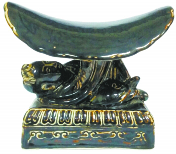 筆者沒有專題收藏瓷枕,但每見制作精美的宋代瓷枕,往往不忍放手,特別是近十年來新發(fā)現(xiàn)的河南魯山段店窯中,有不少宋代的定瓷,其中的瓷枕品種很多,品質(zhì)也很高。如圖中的醬釉孩兒荷葉枕,就十分珍稀。瓷枕塑一個(gè)小童仰臥擎一片荷葉,以荷葉作枕面,構(gòu)思奇特,富有動(dòng)感。枕面還暗刻卷草紋,座臺(tái)四周剔蓮花如意圖案,集多種工藝于一體。以荷花為題材的瓷枕,在夏日中給人以清涼的感覺,宋人就有詠荷花詩句:“暑天勝似涼天好,葉氣過于花氣清”。荷葉的清香之氣比荷花的香氣還要濃郁清爽,不難想象頭枕這片荷葉的涼爽感覺。