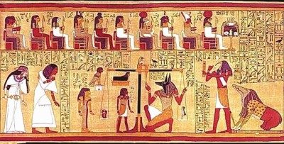 大英博物館所藏的這類埃及文物中,堪稱鎮(zhèn)館之寶的 《亞尼的死者之書》,就是古埃及生死觀的明白表現(xiàn)。死者之書是古埃及常見的隨葬物品。篤信來世的古埃及人用水生植物紙莎草芯制成長長的紙卷,在上面記載死者為獲永生所必經(jīng)的各種磨練、審判、所需的咒文等等并配以插圖,以求死者逢兇化吉,安然到達(dá)極樂世界。收藏家佛里斯班士于1887年在尼羅河中游克索西岸的墓室中發(fā)現(xiàn)了 《亞尼的死者之書》,墓主亞尼是距今約3200年前的真實(shí)人物。這一死者之書可謂迄今已知以草紙記錄的死者之書中保存最完善、描繪最精美的。其中,最有名的段落是“秤心儀式”:天平上,死者的心臟與正義女神翅膀上的一根羽毛加以比較,心臟若不重于羽毛,則說明死者生前積德,可享永生,否則,心臟便會被畫面右邊的怪物所吞噬,死者沒法進(jìn)入來世。畫中,有的神在調(diào)整天平的精確度,有的神準(zhǔn)備記錄測量,有的神在擔(dān)任陪審,一個神與人共存的世界躍然紙上,反映出古埃及人對神靈的虔誠信仰。