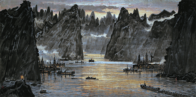 夜色如墨,他用留白與虛影映襯出光的力量,用水墨與色彩將夜幕漸漸“熄燈”。那一瞬間如同意象的通感,連結(jié)了傳統(tǒng)中國水墨與西方繪畫光影的距離,也留下了跨越中西、跨越時(shí)代的永恒藝境。