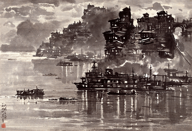 對(duì)于明滅夜色的敏感與鐘愛,和對(duì)于色彩明度的敏感,使宗其香的藝術(shù)在最初走進(jìn)了夜幕的深邃與瑰麗。1939年,22歲的宗其香流亡到重慶求學(xué),考入中央大學(xué)藝術(shù)系。情感的挫折與孤獨(dú)窮困,使他常常于暮色之中徘徊在嘉陵江畔。面對(duì)迷茫幽深的山城與嗚咽流淌的江水,他觸景生情創(chuàng)作了嘉陵江夜景水彩畫。在將夜景水彩畫隨信寄給徐悲鴻后,他得到了徐先生的賞識(shí)和建議:“古人畫夜景只是象征性的,其實(shí)并無光的感受,如《春夜宴桃李園圖》等。你是否試以中國畫筆墨融化寫生,把燈光的美也畫出來?”由此,在夜景中探尋墨色的豐富變化,捕捉與表現(xiàn)黑暗中光亮的不同層次與色階,使宗其香找到了藝術(shù)獨(dú)創(chuàng)的突破口。