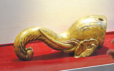 同時,我們注意到發(fā)掘于圓明園大宮門遺址御河內的銅鎏金象首,象牙微挑,眉目傳情,脈絡清晰,閃閃發(fā)亮,吸引游客駐足欣賞?!般~鎏金象首的制作工藝要遠遠在十二生肖之上,是清代皇家用器精品”,張利芳說。據(jù)悉,銅鎏金制品目前挖出僅此一件。