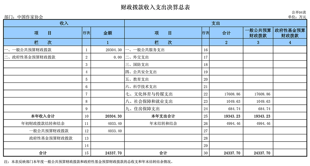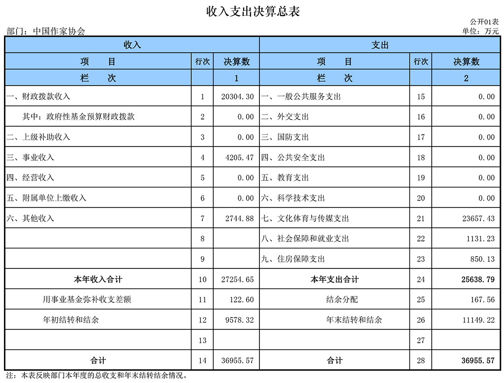 2016年中國(guó)作協(xié)部門決算報(bào)表如下: