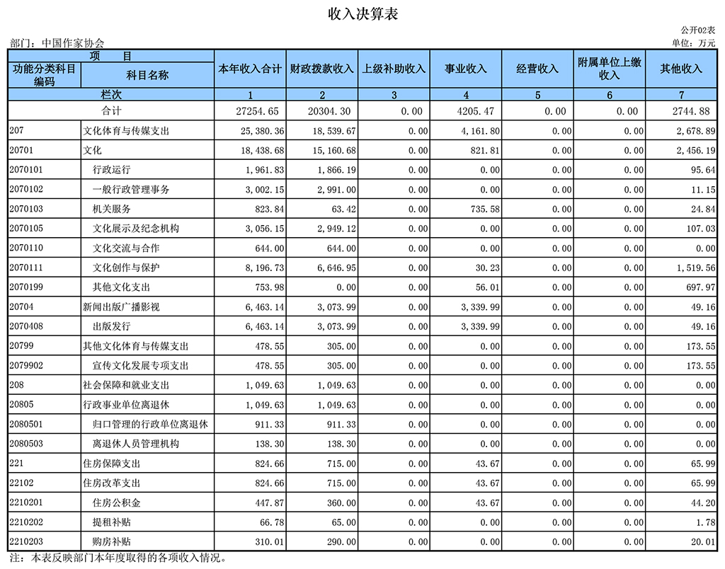 中國(guó)作家協(xié)會(huì)2016年部門決算