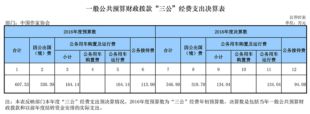 七、關(guān)于中國(guó)作協(xié)2016年度一般公共預(yù)算財(cái)政撥款“三公”經(jīng)費(fèi)支出決算情況說明