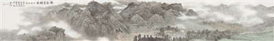 《敕勒青城圖》巨幅長卷就是當代山水畫創(chuàng)作的典范之作。作品描繪的是黃河北岸、陰山南“草原絲路”的時代畫卷,由劉大為、蔣威、程振國、張復興、王夢湖5位藝術家聯(lián)袂創(chuàng)作。這幅環(huán)繞展廳一周的80米大長卷,契合了傳承和弘揚絲綢之路的友好合作精神,順應了和平、發(fā)展、合作、共贏的時代潮流,承載著“一帶一路”的繁榮夢想,賦予古老絲路以嶄新的時代內涵。