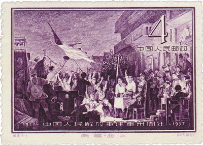 解放戰(zhàn)爭期間,人民軍隊以“中國人民解放軍”的光榮稱謂,所向披靡,解放全中國,完成了“南昌起義”所奠基的歷史使命。僅華東人民郵政,1949年3月發(fā)行了江淮解放紀(jì)念郵票;5月發(fā)行了淮海戰(zhàn)役勝利紀(jì)念郵票,以及南京、上海解放紀(jì)念郵票。
