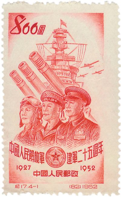 這也深刻表達了建軍“22年”所蘊含的重要意義:自人民軍隊創(chuàng)建以來,經(jīng)歷22年浴血奮戰(zhàn),取得了人民戰(zhàn)爭的偉大勝利。這套紀(jì)念郵票,實質(zhì)上書寫與記錄了“百萬雄師”的歷史性的大凱旋。