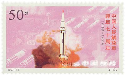 1997年發(fā)行的建軍紀(jì)念郵票,以五個篇幅謳歌了軍隊的現(xiàn)代化建設(shè)(其一見圖⑦)。在即將進入新世紀(jì),香港剛剛回歸祖國之時,郵圖以簡潔直觀的真實畫面,再現(xiàn)了經(jīng)歷了70春秋的砥礪前行,走向現(xiàn)代化和已經(jīng)現(xiàn)代化的這支偉大的武裝力量。