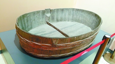 在“奪取全國解放戰(zhàn)爭勝利”展區(qū),一只看似普通的大木盆也有著一番傳奇經(jīng)歷。這只長1.7米,寬1.15米,高0.38米的大木盆,是華東野戰(zhàn)軍著名偵察英雄齊進虎等在渡江戰(zhàn)役前夕到黑沙洲偵察敵情時用過的渡江工具。