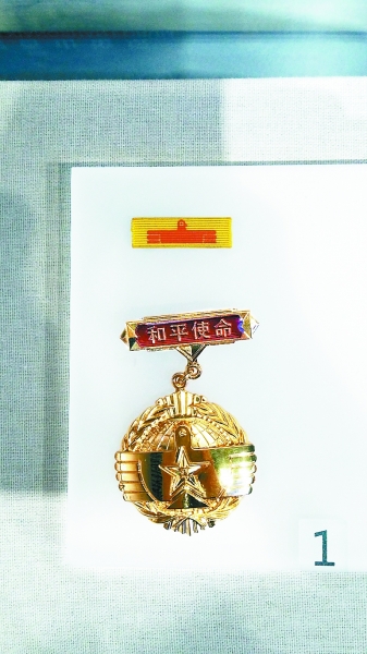進入展覽尾聲,“在強軍興軍新征程上闊步前行”展區(qū)里,可以看到申亮亮的聯(lián)合國維和勛章、中國人民解放軍和平使命紀念章等多枚勛章。