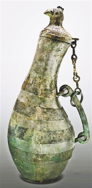 就像那只奇特的鳥蓋瓠壺,縈繞著古人的心念。它是一種動物和一種植物,即鳥和葫蘆的巧妙合體。鳥爪抓蛇,喙可開合。整壺輪廓像一只報曉雄雞,神采奕奕,恰似古天文星象中“瓠瓜星”亦即“天雞”之象,遠非普通用品,而是只有特定身份才能使用的禮器,盛滿玄酒,以祀上天,“一壺在手,運轉(zhuǎn)乾坤”。