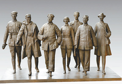 1957年的“中國人民解放軍建軍三十周年紀(jì)念美術(shù)展覽會”,迎來了新中國成立后軍事題材美術(shù)創(chuàng)作的高峰,開創(chuàng)了革命歷史畫創(chuàng)作的新紀(jì)元。這些歷經(jīng)歲月檢驗(yàn)的紅色經(jīng)典,如今成為一個時(shí)代的圖像標(biāo)志——油畫《南昌起義》《秋收起義》《井岡山會師》《強(qiáng)渡大渡河》《紅軍過雪山》《八路軍東渡黃河》《淮海戰(zhàn)役》《解放南京》《跨過鴨綠江》,中國畫《過黃泛區(qū)》《八女投江》《打靶后》,版畫《劉志丹和赤衛(wèi)軍》《紅軍過草地》,雕塑《抗日游擊隊(duì)員》《艱苦歲月》等,均是膾炙人口的佳作。在這些作品中,畫家的創(chuàng)作狀態(tài)與藝術(shù)追求,構(gòu)成了一個和諧的整體,具有不可復(fù)制的歷史價(jià)值與美學(xué)價(jià)值。