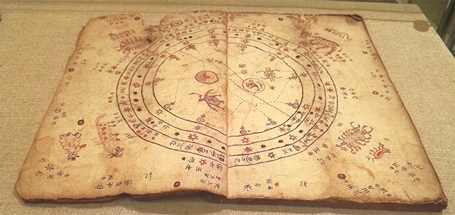 水文《吉書》,清抄本,以天體五行、龍鳳圖示標(biāo)注百事?lián)窦獙S脮?,是水族民間知識(shí)典籍。