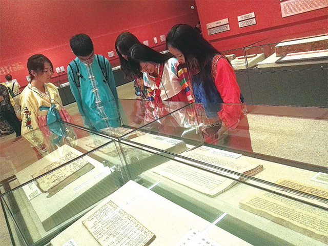 少數(shù)民族兄弟貼心的話語,巡展上動(dòng)情的留言,讓我們心生自豪、信心倍增,這在我們古籍工作者聽來,是世界上最美最動(dòng)聽的語言了。少數(shù)民族古籍,不僅真實(shí)記錄了少數(shù)民族的歷史發(fā)展進(jìn)程,更鐫刻著56個(gè)民族共建家園、手足相親、守望相助的民族精神!古籍工作也許沒有那么多耀眼的光輝,但作為傳承文化的使者,它卻如春雨一般,浸潤著各族人民的心田,實(shí)實(shí)在在地拉近了56個(gè)民族的心,共同筑就了大家庭的溫暖,推動(dòng)著偉大中國夢的早日實(shí)現(xiàn)。