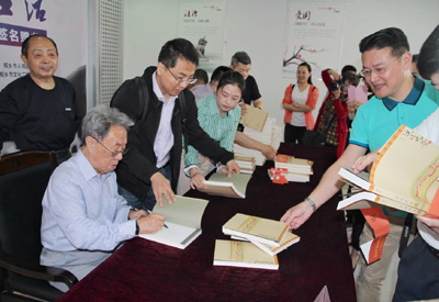 在簽名贈書活動現(xiàn)場,王蒙正在為讀者簽名。