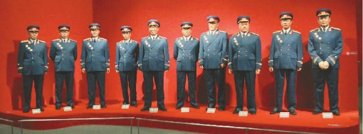除了文物,展覽還展出了“十大元帥”的蠟像。朱德、彭德懷、林彪、劉伯承、賀龍、陳毅等“十大元帥”蠟像吸引了眾多觀眾的目光。這十尊蠟像身高比例與真人一樣,形態(tài)傳神逼真,觀眾不時(shí)發(fā)出“真像! ”“這些蠟像看上去比真人年輕”的感嘆
