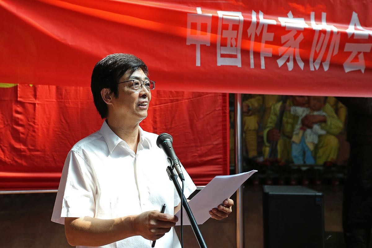 采訪團(tuán)團(tuán)長(zhǎng)吳義勤在啟動(dòng)儀式上致辭 攝影:樊金鳳