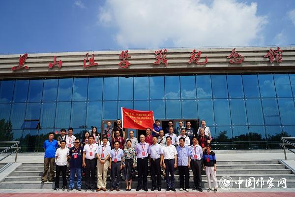 采訪團在黑山阻擊戰(zhàn)紀念館前合影 攝影:樊金鳳