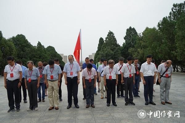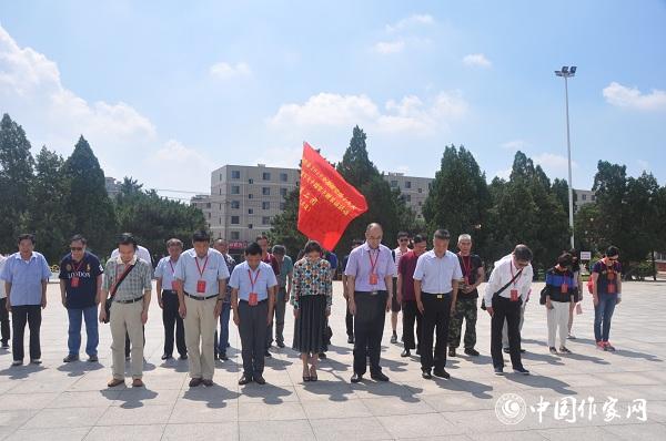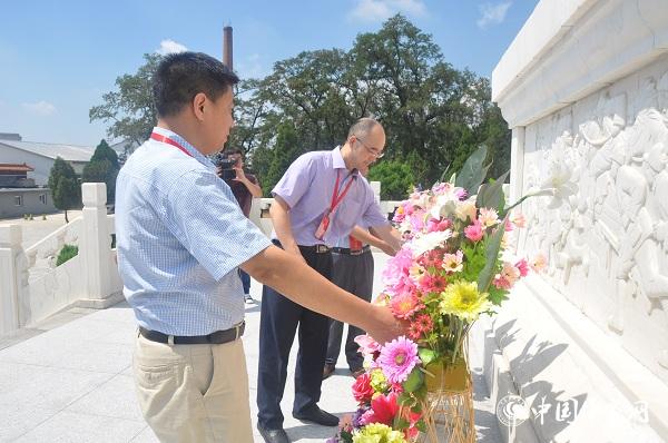 采訪團(tuán)來(lái)到塔山烈士陵園,并向烈士默哀 攝影:樊金鳳