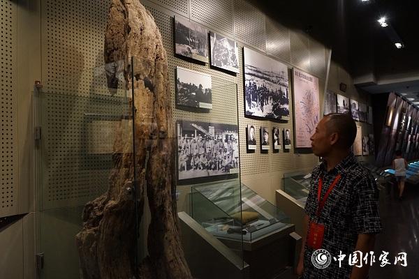 9日上午,采訪團(tuán)來(lái)到遼沈戰(zhàn)役紀(jì)念館,紀(jì)念館由朱德元帥親筆題寫(xiě)?zhàn)^名。從戰(zhàn)史館、支前館、英烈館到全景畫(huà)館,一張張黑白照片、一件件歷史文物將每個(gè)人拉回到那段艱難的革命歷史歲月。紀(jì)念館中,一個(gè)被保存著的枯樹(shù)引起了大家的注意。這棵樹(shù)曾為戰(zhàn)士擋住許多槍炮,被命名為“英雄樹(shù)”。英雄樹(shù)的表面仍殘留著許多槍眼和彈孔,團(tuán)員們站在英雄樹(shù)前,心情久久不能平靜。團(tuán)員陳亮感慨地說(shuō):“這棵樹(shù)曾被槍炮打過(guò),雖有些干枯,卻始終沒(méi)有腐朽,它讓我們敬畏?!焙髞?lái),陳亮還為英雄樹(shù)作了一首詩(shī)。他說(shuō),看到實(shí)物實(shí)景,內(nèi)心常常受到觸動(dòng),創(chuàng)作的靈感也會(huì)瞬間迸發(fā)。寫(xiě)作就是為了不遺忘。團(tuán)員裔兆宏有同樣的感受,他說(shuō),參觀革命根據(jù)地現(xiàn)場(chǎng)遺址,對(duì)于摒棄歷史虛無(wú)主義,真實(shí)再現(xiàn)革命歷史,創(chuàng)作出有歷史感、有情懷、有溫度的作品具有重要的意義。
