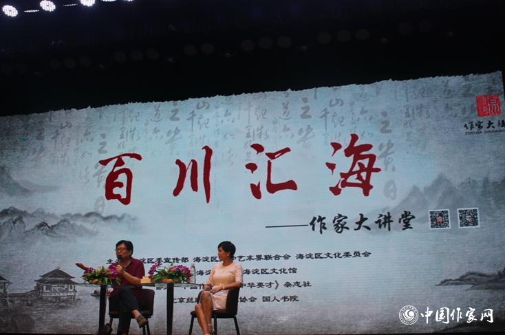 “百川匯海?作家大講堂”系列公益講座由北京海淀區(qū)委宣傳部、海淀區(qū)文聯(lián)、海淀區(qū)文化委主辦,海淀區(qū)作協(xié)、海淀區(qū)文化館承辦,中國作家網(wǎng)、《中華英才》雜志社、北京絲路文化發(fā)展協(xié)會、國人書院協(xié)辦。北京大學(xué)中文系主任陳曉明、首都師范大學(xué)教授張志忠、海淀區(qū)作協(xié)主席石鐘山擔任文學(xué)顧問,中央電視臺新聞主播崔志剛擔任藝術(shù)顧問。講座旨在邀請活躍在當代文壇上的著名作家、文藝理論家、港臺作家以“師說”的名義走上講臺,每月一講,通過創(chuàng)新講座的內(nèi)容與形式,不斷給廣大文學(xué)愛好者以全新的視聽效果,強調(diào)“師者”與受眾者的互動,助力實現(xiàn)廣大文學(xué)愛好者的文學(xué)夢想。