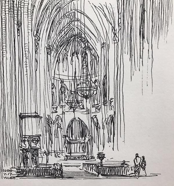 維也納圣查爾斯教堂,齊康鋼筆速寫