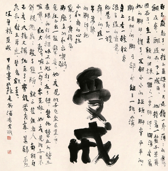 上世紀(jì)90年代,我曾在《中國(guó)書法》雜志主持過當(dāng)代作家談書法座談會(huì)。汪曾祺、李凖、鄧友梅、林斤瀾、唐達(dá)成等在會(huì)上談?wù)摃谌魬液?、字字珠璣,難怪他們不僅善書法,小說也如此有味道、耐咀嚼、夠玩味。他們筆下之所以能如此生動(dòng)描繪具有傳統(tǒng)文化色彩的人物,就因?yàn)樗麄儽旧碓谶@方面的深厚功力所致。當(dāng)代青年作家倘若如老作家一樣也具備這種傳統(tǒng)文化功力,所創(chuàng)造的人物畫卷就會(huì)更加豐富多彩。經(jīng)典的魅力是永恒的。詩人作家們?nèi)缬猩詈竦臅ㄋ囆g(shù)這種傳統(tǒng)文化的復(fù)合性基因介入,也必將使當(dāng)代文學(xué)以它的多樣性、經(jīng)典性爭(zhēng)輝于世界。