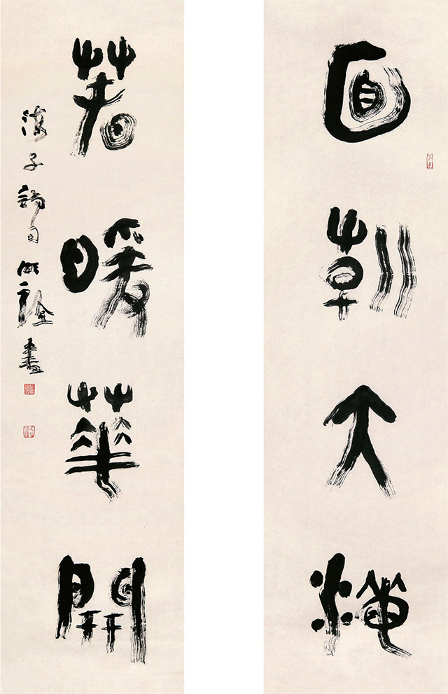 海子詩句“面朝大海,春暖花開”(篆書對(duì)聯(lián)) 于明詮 作